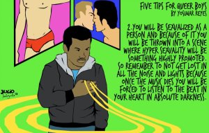 Recently, I’ve been more open to casual sex than I ever have been before in my life. I’ve been involved with a few different partners, building friendships while also hooking up from time to time. I’ve been learning a great deal about my desires and my limits, what makes me feel comfortable, and the ways in which I need to challenge myself to think differently about my own sexuality. This situation might sound standard to some of my peers, but it has been a big change for me, as hooking up is something that I’ve been intimidated by and cautious with for most of my life as a queer person. This has been due largely to what hooking up has entailed in the different communities I have been a part of, and what sexual options have been available to me as a young queer man of color.