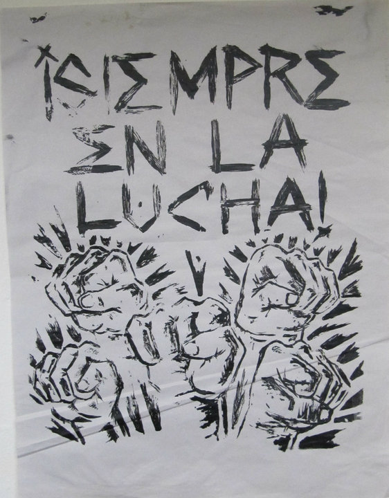8: Closing: Have different members of the class hang each of the the three different posters in three different parts of the room, where they can be easily seen by all and referenced throughout the corse of the semester or year. A simple way of returning to them, as well as to train the classroom’s lens on current events and struggles in the immediate community, is to ask collectively on a daily or weekly basis: “¿Hoy quién está junto con nosotros en la lucha? ¿Quién está luchando al lado de nuestro pueblo? Today, who is with us in the struggle? Who is struggling alongside our community?”